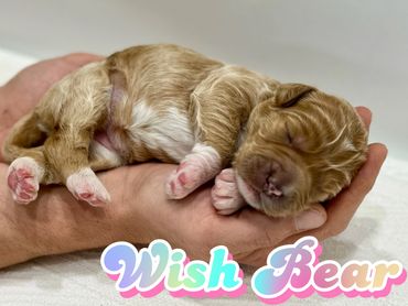 We knew Belle carried for Parti and we were hoping to see one in the bunch, we were pleasantly surprised to see 3 Partis, Share, Cheer, and Good Luck Bear. Both Wish and Funshine have beautiful dark coats with little white paws and bellies, and Brave Heart Lion appears to be a handsome solid apricot/carmel color.